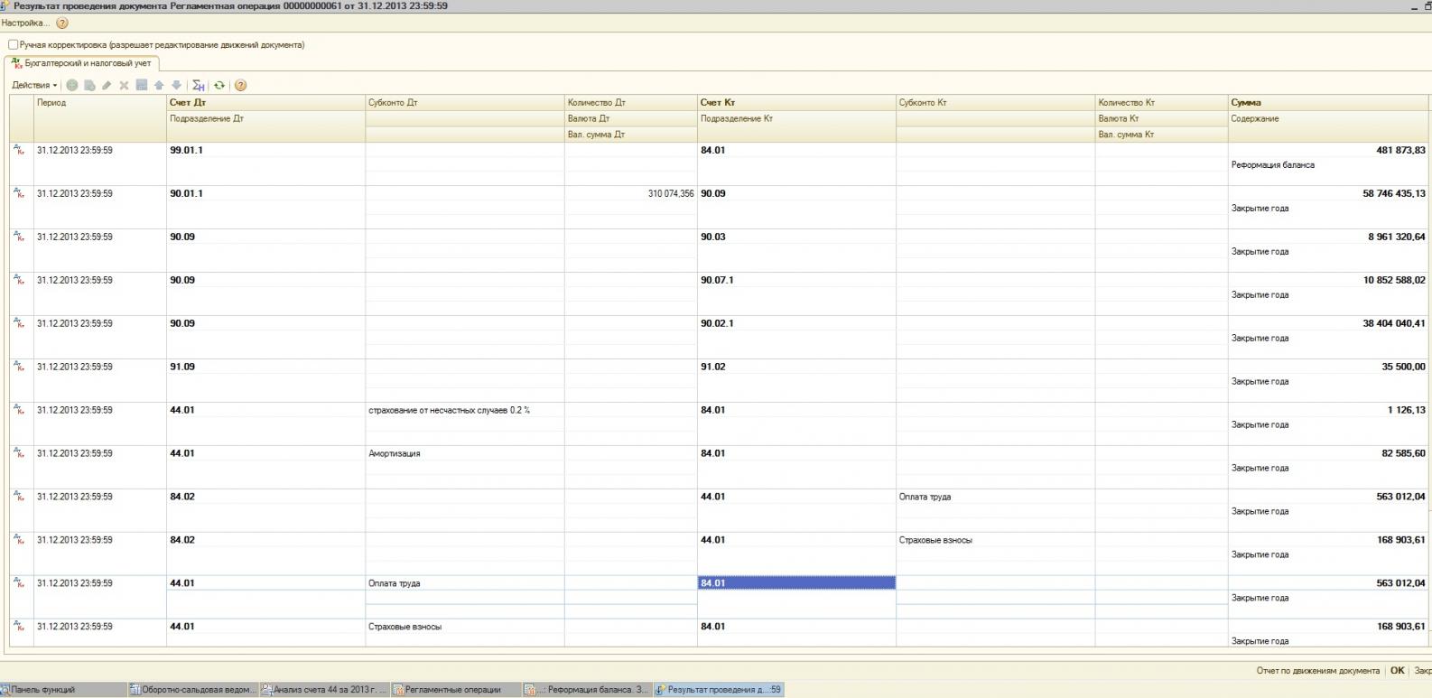 если делать частями закрытие месяца после операции закрытие 44 счета у вас в ОСВ по 44 счету только 1тыс руб на остатке и ни какого 84 счета? правильно?не понятно почему после проведения реформации затраты с 44 уходят на 84,